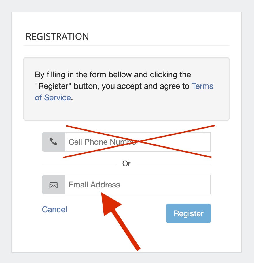 On the Registration page, do not use a phone number, but use the email for OSMPW